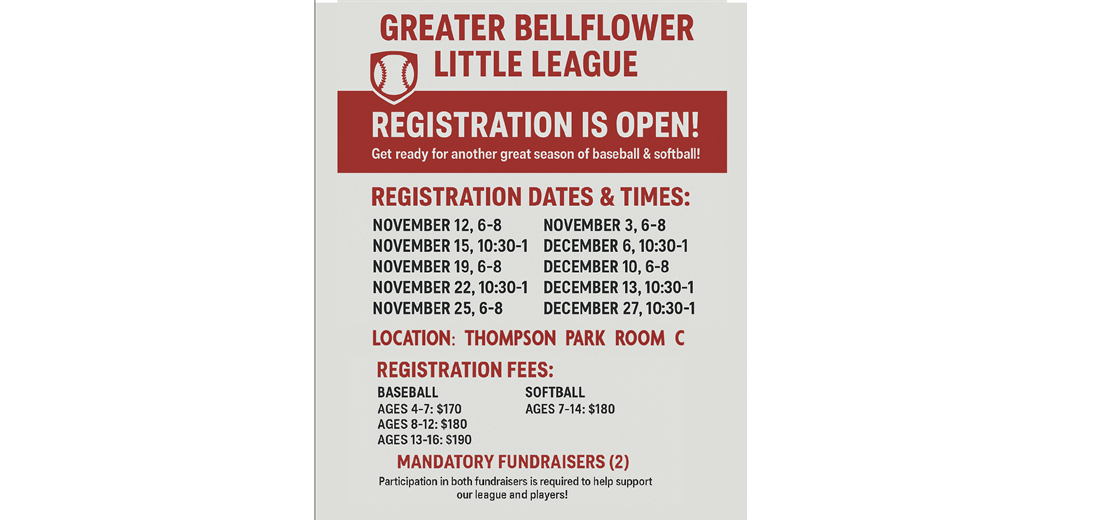 Online registration is now opened and in person dates are listed on the flyer